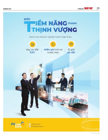 QUẢNG CÁO Số đặc biệt 29 BI N THÀNH Dành cho Doanh nghi p Xu t nh p kh u Vay ưu đãi Mi n phí tr n T giá 7,5% trư c h n ưu đãi 1900 5555 92 PVcomBank.com.vn NGAYNAY.VN